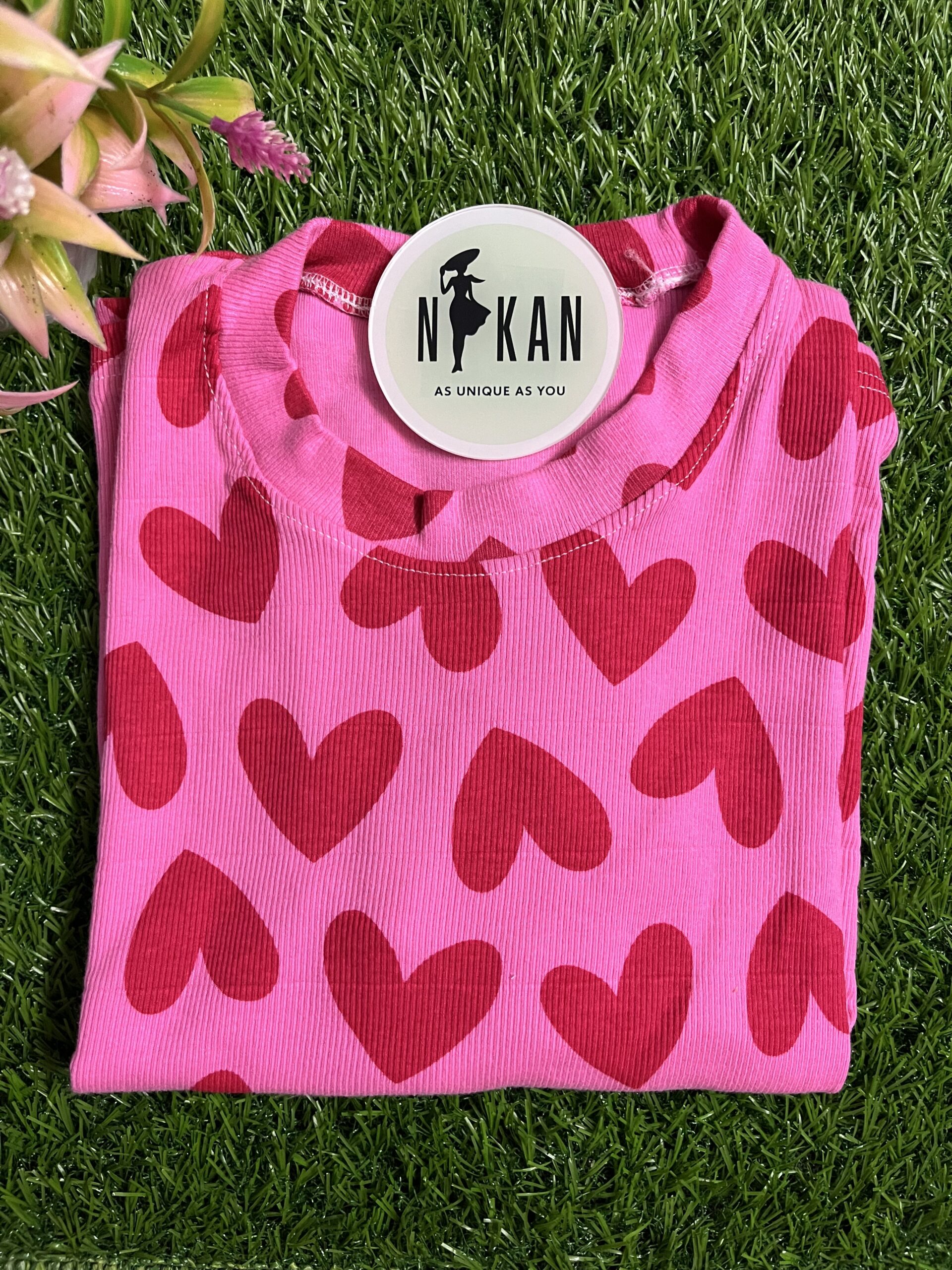 Fall in love with this Valentina crop t shirt, accented with red heart. Crafted from a premium rib cotton knit fabric, which stretches naturally and gives a comfortable, body hugging fit.